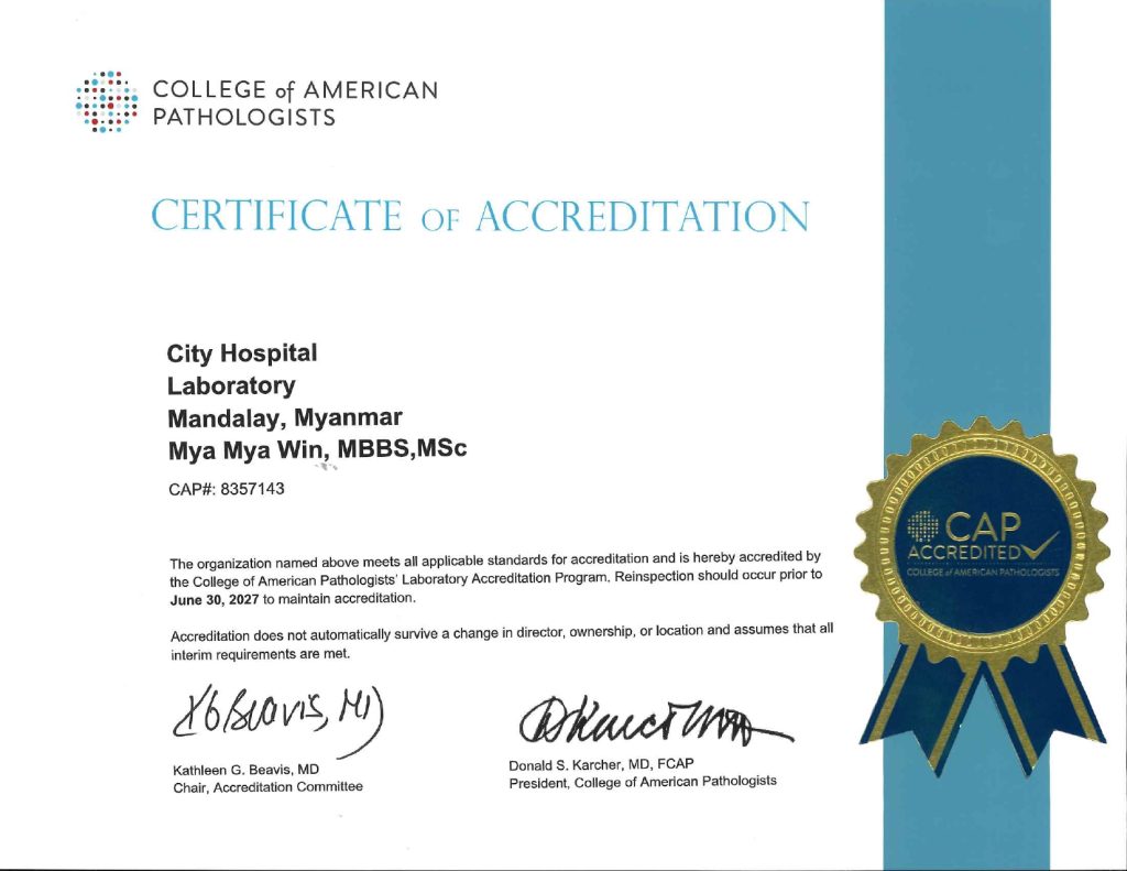 City Hospital received ISO accreditation in March 2013 as approval of quality healthcare. City Hospital is an associate member of the International Hospital Federation as well as a member of the Myanmar Private Hospitals’ Association. Our hospital is green and clean with a garden and wide parking lot. Mini-mart and Restaurant are also available inside the hospital building.